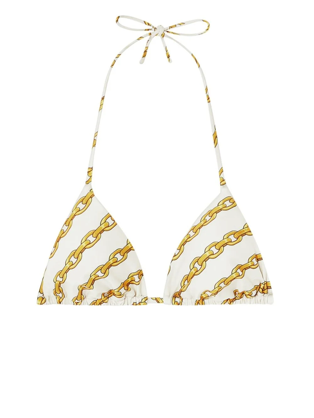 Treasure bikini top Highlights - White - Halterneck tie fastening - Rear tie fastening - Triangle cup - Be mindful to try on swimwear over your own garments. Made in Italy Composition Polyester 78%, Elastane 22%
