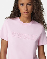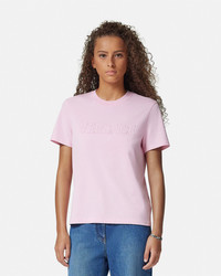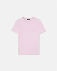 DETAILS This shortsleeved crewneck Tshirt has a slim fit and is crafted from cotton jersey The design features a fringed Versace logo embroidery at the front - Versace logo embroidery - Short sleeves - Crewneck - Outer composition: 100% Cotton - Embroidery: 100% Polyester - Trim: 98% Cotton, 2% Elastane Item: 1018981-1A13616_1PS10 SIZE & FIT - The model is 5'10" / 1.79 m tall and wears size 38 IT
