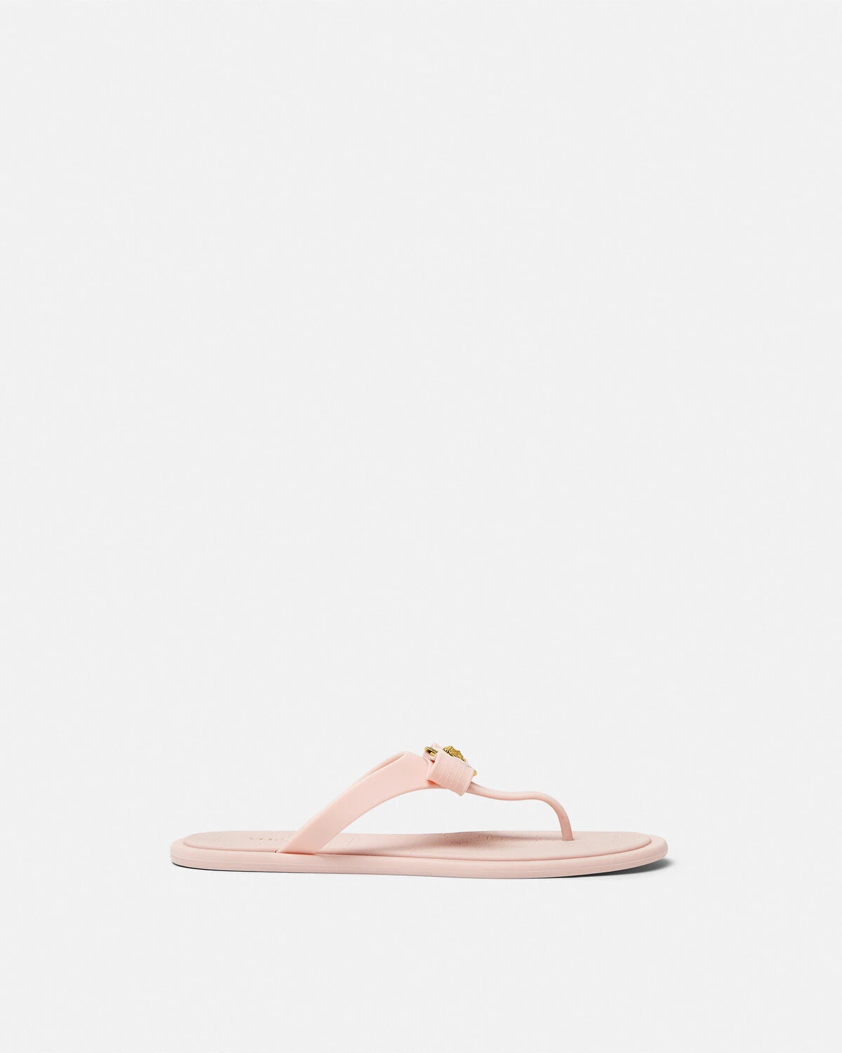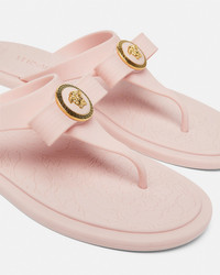 DETAILS These Tbar rubber sandals feature an accent nastro Gianni bow with an enamel Medusa hardware and an allover Barocco engraved sole - Medusa hardware - Barocco engraving - Slip-on - T-bar - Outer composition: 100% Thermoplastic polyurethane - Sole: 100% Thermoplastic polyurethane Item: 1018789-1A10983_1PT2V SIZE & FIT - The shoe weighs approximately 10.6 oz / 0.3 kg for the model size 39 IT - Footbed: comfortable - Fits true to size, take your normal size