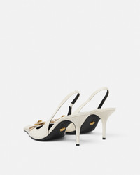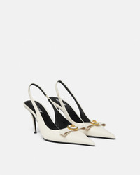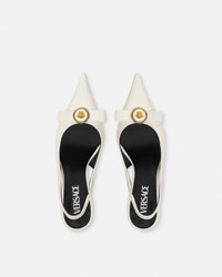 High-heeled slingback pumps crafted from calf leather with a Gianni Ribbon bow and a central Medusa hardware on the upper. - Medusa hardware - Slingback strap - Pointed toe - Stiletto heels - Outer composition: 100% Calf leather - Lining 1: 100% Lambskin - Lining 2: 100% Goat leather - Trim: 100% Lambskin - Sole: 100% Calf leather Size & Fit - Heel: 3.3" / 8.5 cm - Footbed: regular - Fits true to size, take your normal size Item: 1013717-DVT2P_1KC0V