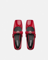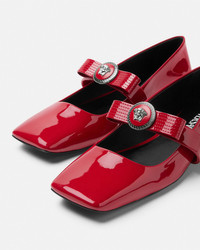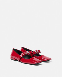 DETAILS Squaretoe ballerina flats crafted from patent leather accented by the archival Gianni Ribbon bow with enamel Medusa hardware on the front strap - Medusa hardware - Square toe - Front strap - Outer composition: 100% Calf leather - Lining 1: 100% Lambskin - Lining 2: 100% Goat leather - Trim: 100% Lambskin - Sole: 100% Calf leather Item: 1016073-D2VE_1RB3P SIZE & FIT - Heel: 0.8" / 2 cm - Footbed: regular - Fit is true to size, we recommend taking your normal size
