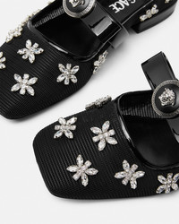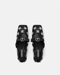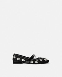 DETAILS Squaretoe ballerina flats embellished with marquiseshaped jewel crystals on sheer mesh uppers The pair is accented by the archival Gianni Ribbon bow with enamel Medusa hardware on the front strap - Medusa hardware - Crystal embellishments - Square toe - Front strap - Outer composition: 100% Polyester - Lining 1: 100% Lambskin - Lining 2: 100% Goat leather - Lining 3: 100% Nylon - Trim: 100% Calf leather - Sole: 100% Calf leather Item: 1016073-1A11865_1B00P SIZE & FIT - The shoe weighs approximately 7 oz / 0.2 kg for the model size 37 IT - Heel: 0.8" / 2 cm - Footbed: regular - Fit is true to size, we recommend taking your normal size
