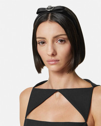 DETAILS A satin-finished headband featuring the 'nastro Gianni' bow with a Medusa '95 emblem framed by Greca engraving. - Medusa '95 hardware - Greca motif - Outer composition: 72% Viscose, 28% Silk - Trim: 72% Viscose, 28% Silk Item: 1014906-1A10921_I01_UNIC_1B360__