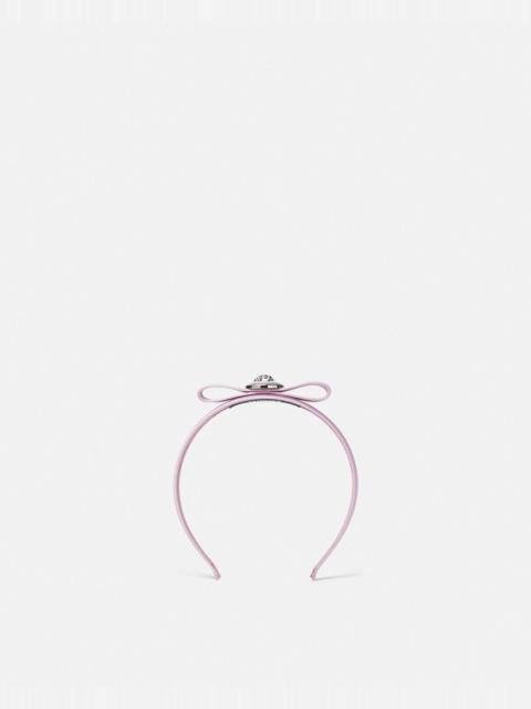 DETAILS A satin-finished headband featuring the 'nastro Gianni' bow and a three-dimensional Medusa emblem with Greca engraving. - Medusa '95 hardware - Greca motif - Outer composition: 72% Viscose, 28% Silk - Trim: 72% Viscose, 28% Silk Item: 1014906-1A10433_I01_UNIC_1VD6P__