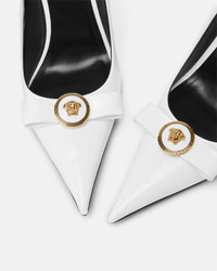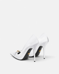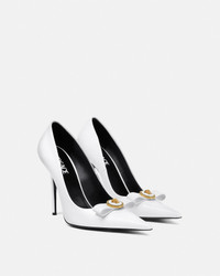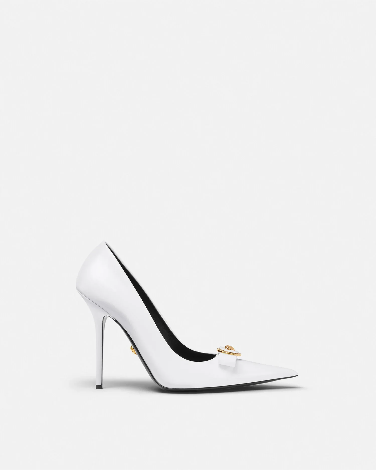 Sharp-pointed toe pumps in patent leather featuring stiletto heels and a Medusa bow at the front with the archival 'nastro Gianni' stitching. - Medusa hardware - Pointed toe - Stiletto heels - Outer composition: 100% Calf leather - Lining 1: 100% Lambskin - Lining 2: 100% Goat leather - Sole: 100% Calf leather Size & Fit - The shoe weighs approximately 0.3 kg for the model size 39 IT - Heel: 4.3" / 11 cm Item: 1012494-D2VE_1W00V