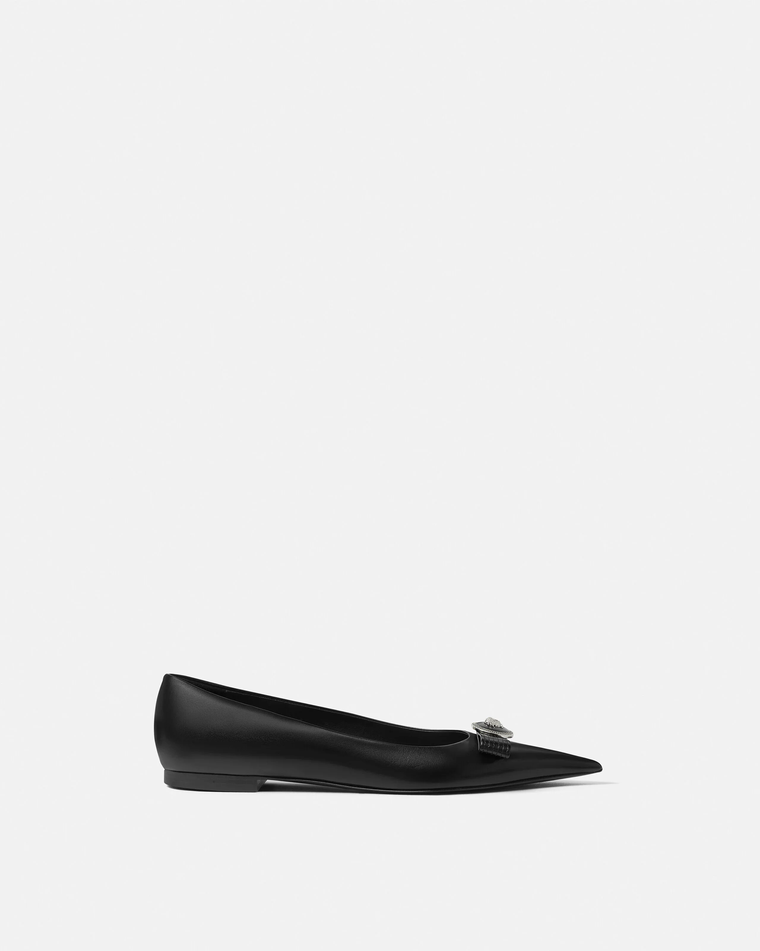 Ballerina flats crafted from calf leather with a Gianni Ribbon bow and Medusa hardware on the upper. - Medusa '95 hardware - Pointed toe - Outer composition: 100% Calf leather - Lining 1: 100% Lambskin - Lining 2: 100% Goat leather - Sole: 100% Calf leather Size & Fit - Footbed: regular - Fits true to size, take your normal size Item: 1013456-DVT2P_1B00P