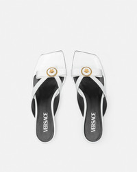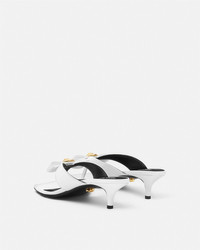DETAILS Patent mules featuring a kitten-heeled design and a Medusa bow at the T-bar. - Medusa hardware - T-bar - Kitten heel - Squared toe - Outer composition: 100% Calf leather - Lining 1: 100% Lambskin - Lining 2: 100% Goat leather - Sole: 100% Calf leather Item: 1013017-D2VE_1W00V SIZE & FIT - The shoe weighs approximately 7 oz / 0.2 kg for the model size 39 IT - Heel: 1.8" / 4.5 cm