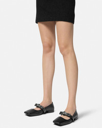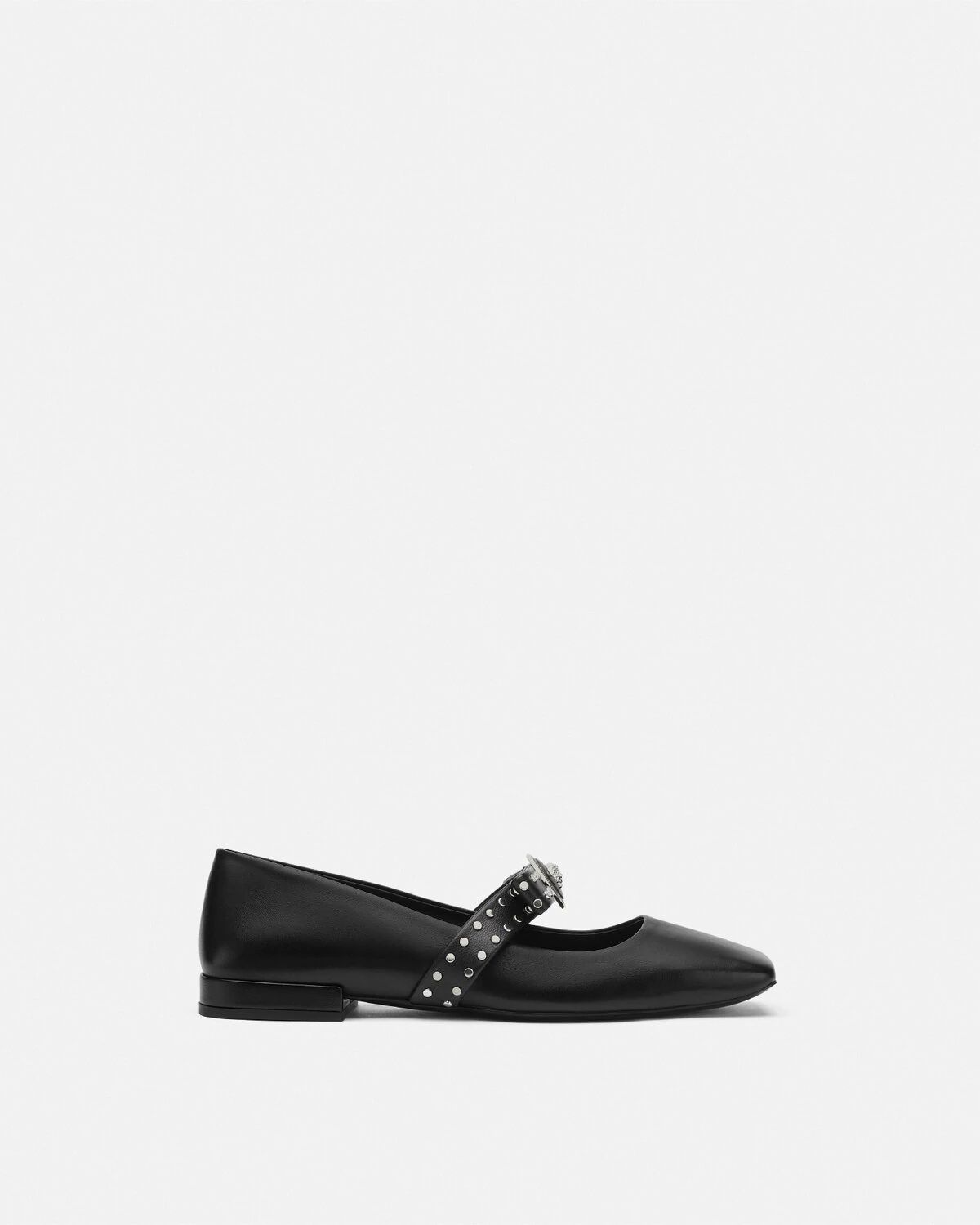 DETAILS These square-toe ballerina flats are crafted from nappa leather and feature an enamel Medusa hardware on the signature 'nastro Gianni' bow. The style is accented by studs on the upper strap and bow. - Medusa hardware - Stud embellishments - Square toe - Outer composition: 100% Lambskin - Lining 1: 100% Lambskin - Lining 2: 100% Goat leather - Sole: 100% Calf leather Item: 1016073-1A01006_1B00P SIZE & FIT - The shoe weighs approximately 9.8 oz / 278 g for the model size 40 IT - Heel: 0.8" / 2 cm - Footbed: regular - Fits true to size, take your normal size