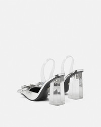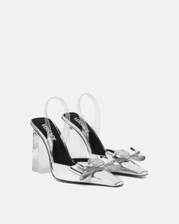 DETAILS Slingback pumps in transparent PVC set on high block heels with a bow accented by Medusa hardware. - Medusa hardware - Square pointed toes - High block heel - Outer composition: 100% Calf leather - Lining 1: 100% Goat leather - Lining 2: 100% Lambskin - Sole: 100% Calf leather - Trim: 100% Polyurethane Item: 1015356-1A10007_2T08P SIZE & FIT - The shoe weighs approximately 14 oz / 0.4 kg for the model size 38 IT - Heel: 4.1" / 10.5 cm