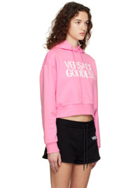 French terry hoodie. · Drawstring at hood · Logo text embroidered at front · Rib knit hem and cuffs Supplier color: Pink paradise Body: 100% cotton. Trim 1: 100% cotton. Trim 2: 95% cotton, 5% elastane. Trim 3: 100% polyester. Made in Italy 231653F097009