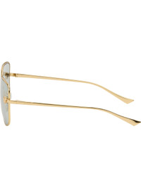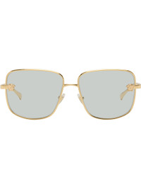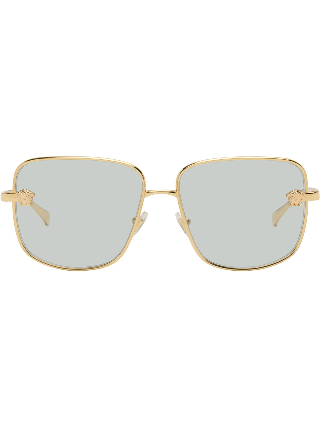 Square metal-frame sunglasses. · Blue lenses · 100% UVA/UVB protection, category 1 · Adjustable rubber nose pads · Logo hardware at face · Logo etched at temples · Includes case · Size: 59.15 140 Supplier color: Gold Metal. Made in Italy 252404F005002