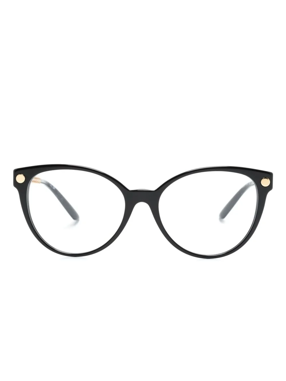 Greca-arm butterfly-frame glasses Highlights - Black - Acetate/metal - Butterfly frame - Clear lenses - Signature greca sculpted arms - Curved tips - Gold-tone hardware - All glasses from farfetch are sold as non-prescription frames. - These glasses come with a protective case. Made in Italy Composition Acrylic 100%, Metal 100%, Acetate 100% SIZE & FIT Measurement Arm Length 5.51 in(14 cm) Bridge Width 0.62 in(1.6 cm) Lens Diameter 2.12 in(5.4 cm) Total Width 5.43 in(13.8 cm)