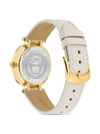 Greca-bezel 34mm Highlights - White dial - Round case shape - 34mm case size - Roman numerals dial - Greca engraved bezel - Quartz movement - Water resistance up to 30m/3 atm - This item comes with a standard one-year warranty from the boutique. Imported SIZE & FIT Measurement DIAMETER 1.33 in(3.4 cm)