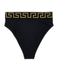 Bikini bottoms in stretch fabric with elastic waistband with 'Greca' pattern, high waist model. Composition: 78% polyamide 22% elastane Made in: Italy Color: Black Size and fit: - true to size fit Model number: ABD010951A11119A1008