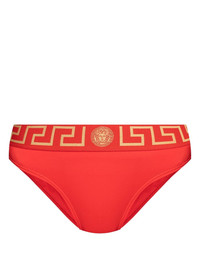 Greca-detail bikini bottoms Highlights - Bright red - Econyl® - Stretch-design - Signature greca detailing - Elasticated waistband - Mid-rise - Be mindful to try on swimwear over your own garments. Made in Italy Composition Outer: ECONYL® 78%, Spandex/Elastane 22% Lining: ECONYL® 78%, Spandex/Elastane 22%