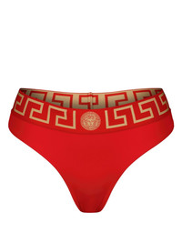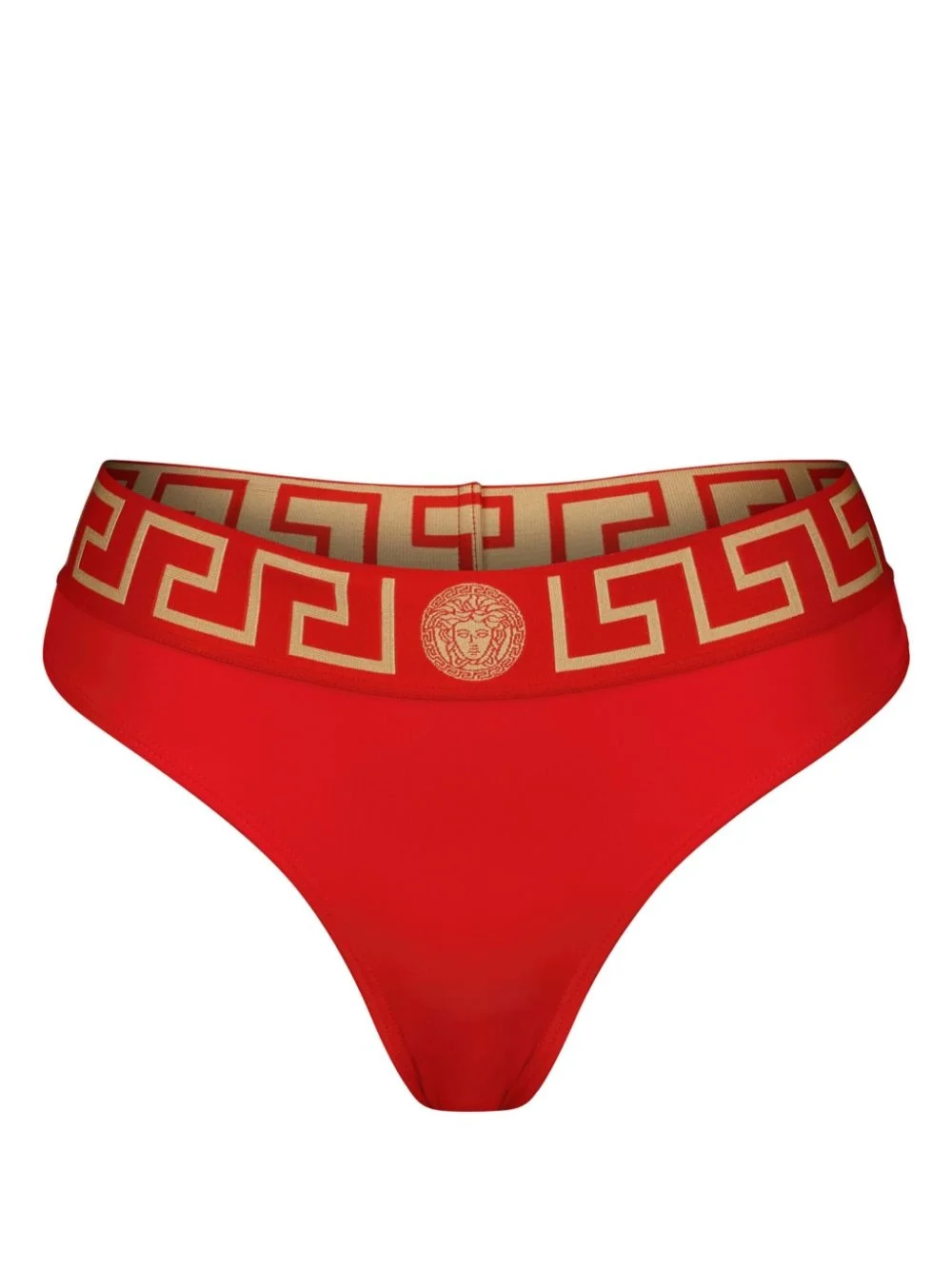 Greca Border bikini bottoms Highlights - Scarlet - Stretch-design - Elasticated logo waistband - Signature greca detailing - Medusa head motif - Be mindful to try on swimwear over your own garments. Made in Italy Composition Polyamide 78%, Spandex/Elastane 22%