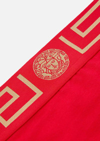 Stretch cotton briefs with high-cut legs and iconic Greca Border elasticized waistband. DETAILS & CARE - Greca Border elasticized waistband - High-cut legs - Outer fabric: 94% Cotton, 6% Elastane - Gusset: 94% Cotton, 6% Elastane - Hand wash gently using mild detergent - Delicate dry clean - Do not bleach - Do not tumble dry - Do not iron - Imported SIZE & FIT - All sizes fit Italian standards