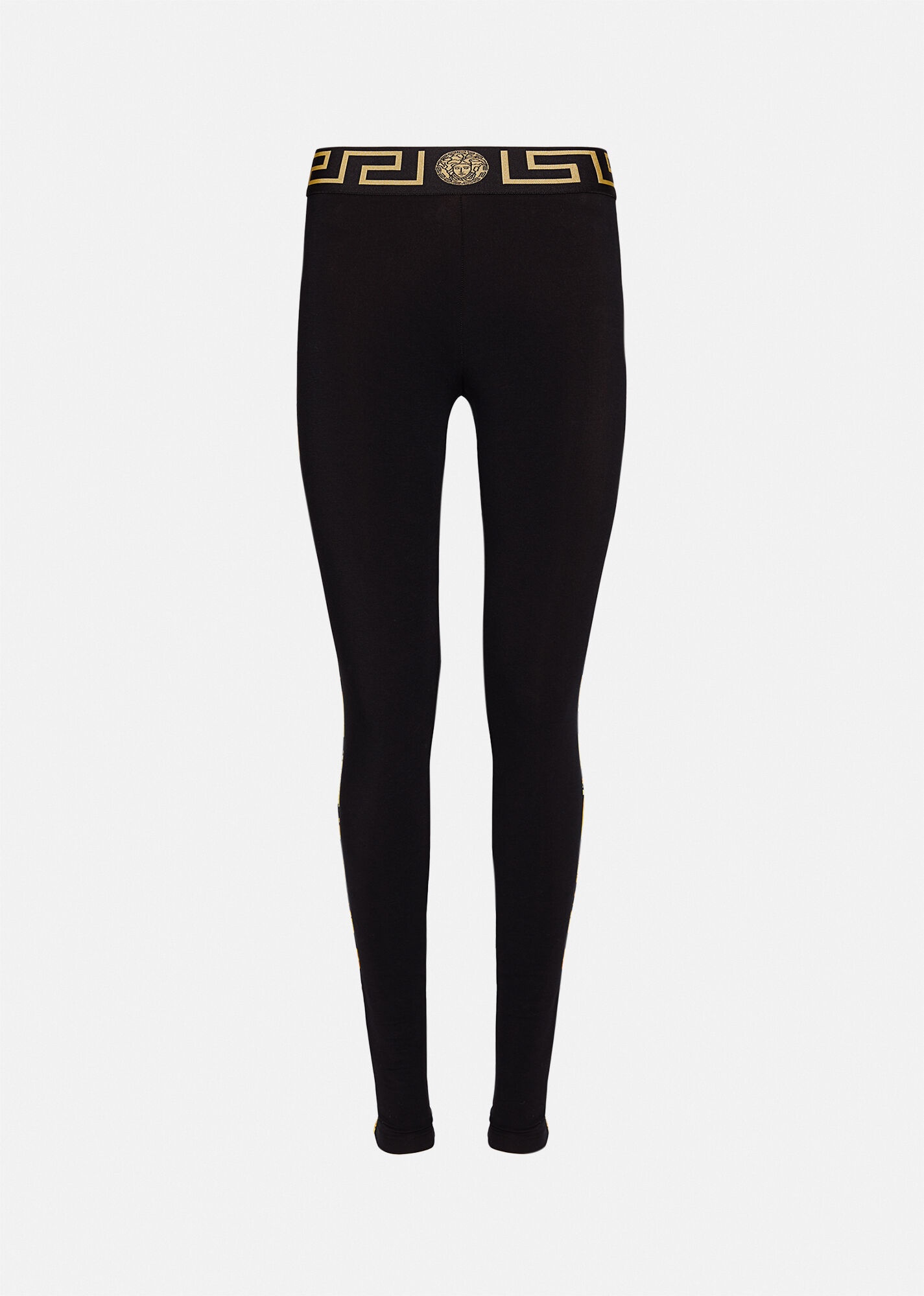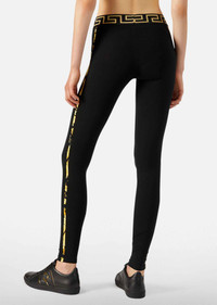 Workout powered by the Medusa - stretch cotton leggings with a Medusa and Greca motif on the elasticized waistband. DETAILS & CARE - Medusa - Greca border - Outer Fabric: 90% Cotton, 10% Elastane - Trim: 90% Cotton, 10% Elastane - Cool iron - Delicate dry clean - Machine wash cold (delicate) - Do not bleach - Do not tumble dry - Made in Italy SIZE & FIT - All sizes fit Italian standards