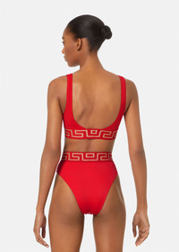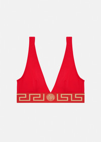 Instantly recognizable, this triangle bikini top is embellished with Greca patterned shoulder and back straps. DETAILS & CARE - Greca shoulder straps - Greca elasticized band - Outer fabric: 78% Nylon, 22% Elastane - Lining: 78% Nylon, 22% Elastane, 22% Elastane - Made in Italy SIZE & FIT - All sizes fit Italian standards - The Model is 1,75 m and wears a size 1