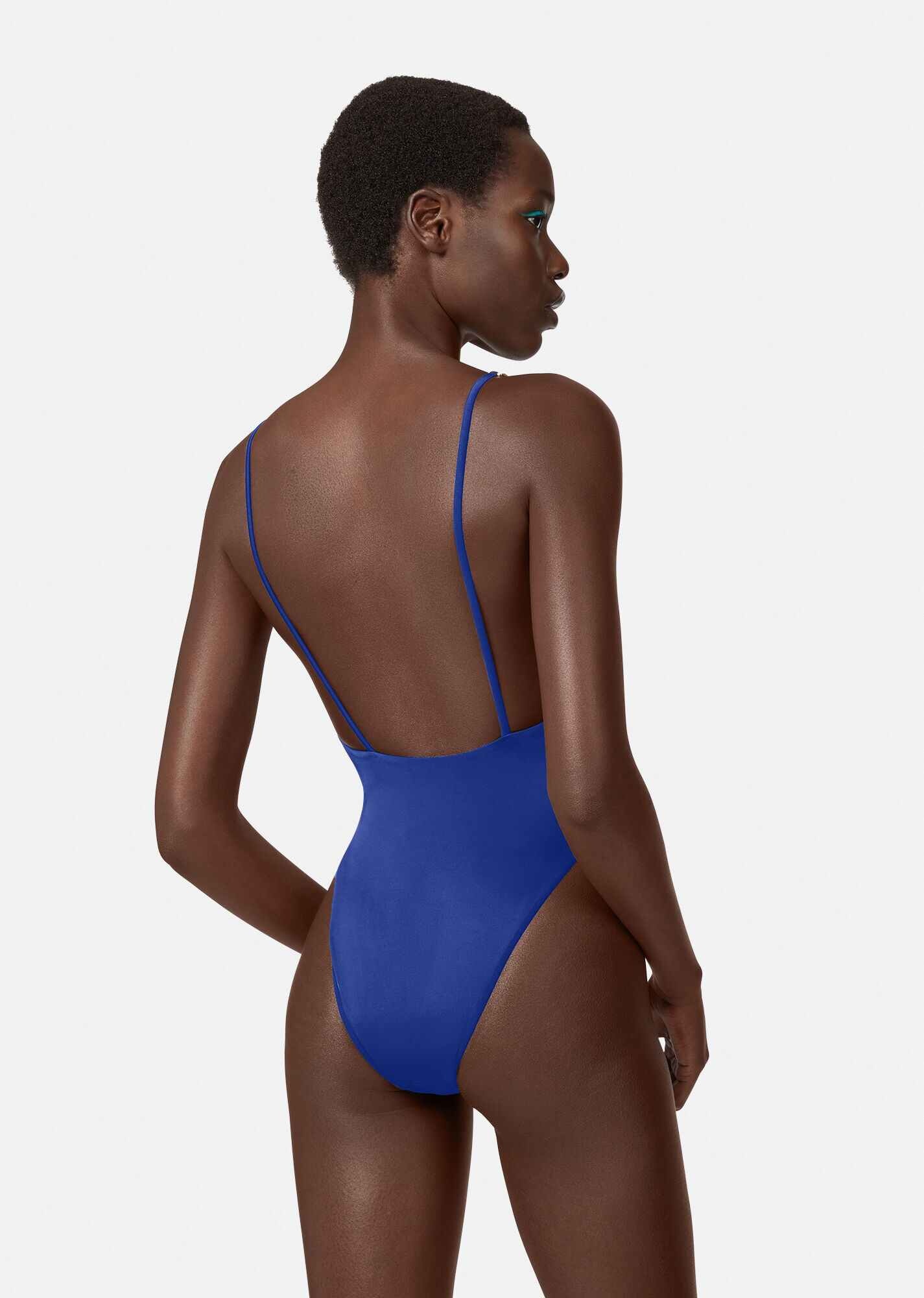 An eye-catching style, this one-piece swimsuit is designed with a low backline an high leg line. The exceptional beach and pool style is enriched with Greca chain hardware on the shoulder straps. DETAILS & CARE - One-piece - Greca chain on the shoulder straps - Low backline - High legs - Outer fabric: 78% Nylon, 22% Elastane - Lining: 75% Nylon, 25% Elastane - Hand wash gently using mild detergent - Delicate dry clean - Do not bleach - Do not tumble dry - Do not iron - Made in Italy SIZE & FIT - All sizes fit Italian standards - The Model is 1,75 m and wears a size 1