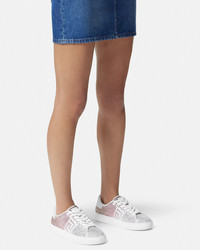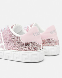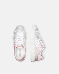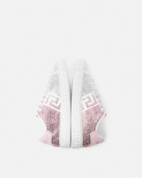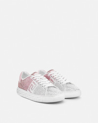 DETAILS These lowtop sneakers are characterised by an engraved Greca pattern on the soles and feature allover crystalembellishments on the uppers in degrad colors A foil Versace logo details the heel counter - Greca motif - Crystal embellishments - Low-top - Lace-up - Round toe - Logo patch at the tongue - Logo on heel counter - Outer composition: 72% Viscose, 28% Silk - Lining: 100% Polyester - Trim: 100% Nylon - Sole: 100% Thermoplastic polyurethane Item: 1013568-1A13090_2WL90&sc_eh=307de9cc9970a6891&sc_lid=700672125&sc_llid=24130&sc_src=email_7369000&sc_uid=F1amhQ5Vqc&wt_mc=GBR.e-mail.newsletter.mail_20250211.20250211_1741_20250211_Greca-Shoes-Sneakers_W_UK.IMAGE%20md_1114213.png SIZE & FIT - The shoe weighs approximately 17.7 oz / 0.5 kg for the model size 37 IT - Footbed: regular - Fits true to size, take your normal size