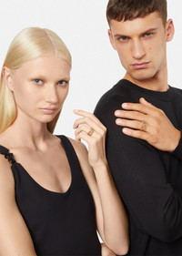 Greca pattern ring with crystal embellishments. All Versace jewelry items are lead and nickel free. DETAILS & CARE - Greca - Crystals - Metal: Brass - Finish: Tribute Gold - Please note water and perfume may damage the item - Made in Italy SIZE & FIT - Length: 1 cm