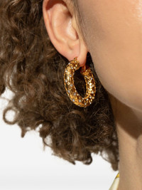 Greca-engraved hoops Highlights - Gold-tone - Embellished with crystals - Hinged closure - Circular shape - For pierced ears Made in Italy