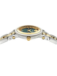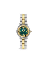 Greca Flo.Petite 28mm Highlights - 28mm - Green - Round face - Sapphire-crystal glass - Index dial - Sword hands - Medusa head motif - Quartz movement - Screw-down crown - Adjustable link bracelet - Folding clasp - This item comes with a standard one-year warranty from the boutique. Imported
