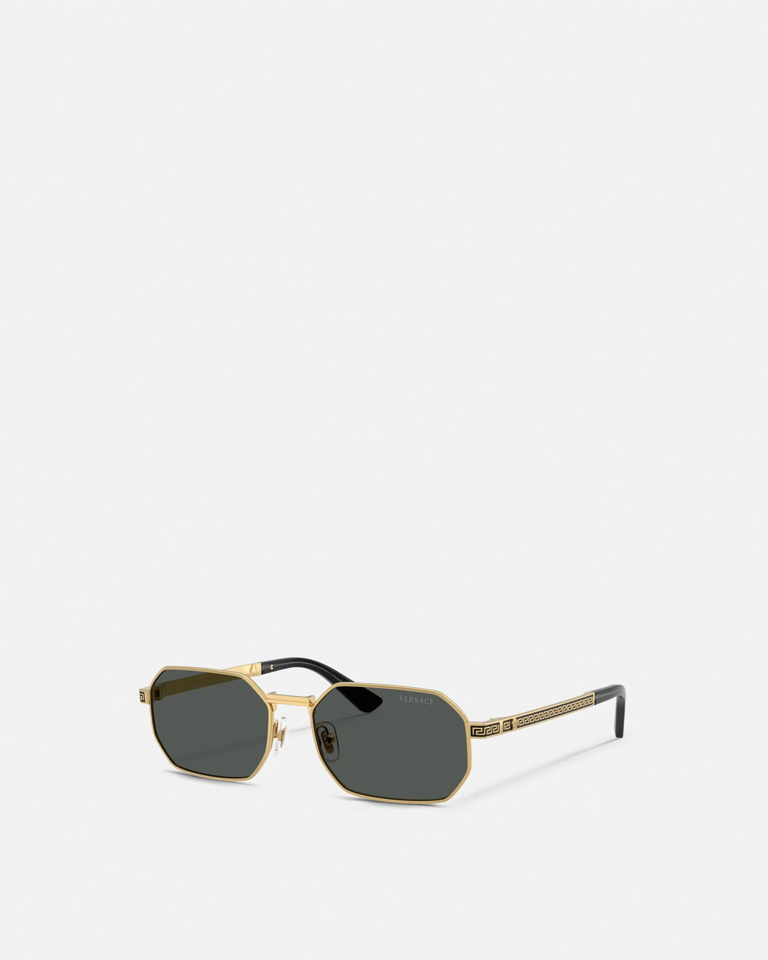 Rectangular sunglasses in sleek metal construction featuring an enamelled Greca motif and a small Medusa hardware at the temples. The style is completed by adjustable nose pads. - Medusa hardware - Greca motif - Frame color: gold-tone - Temple color: gold-tone - Lens color: dark gray - Temple tip color: black - Frame: metal - Temple: metal Size & Fit - Lens: W2.1" x H1.5" / W54 x H37.9 mm - Bridge: 5.7" / 145 mm - Temple: 5.7" / 145 mm Item: O2297-O10028754_RTU_TU_ONUL__