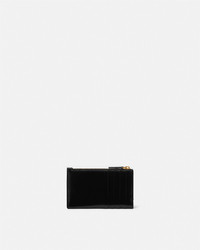 DETAILS A zipped design, this card holder is crafted from quilted leather and features Greca chain hardware—a signature Versace symbol, constructed from one uninterrupted line. - Greca hardware - Top zip closure - Four card slots at the back - Outer composition: 100% Calf leather - Lining: 100% Lambskin Item: 1012820-1A08186_DTU_UNICA_1B00V__ SIZE & FIT - L5.1 x W.2 x H3.1" - Weight: 2 oz