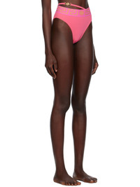 Stretch nylon jersey bikini bottom. · High-rise · Medusa and Greek key pattern at elasticized waistband · Strap with Medusa hardware at waist · Full jersey lining Supplier color: Flamingo Body: 78% polyamide, 22% elastane. Trim: 82% polyester, 9% elastane, 9% polyamide. Made in Italy 232653F103010