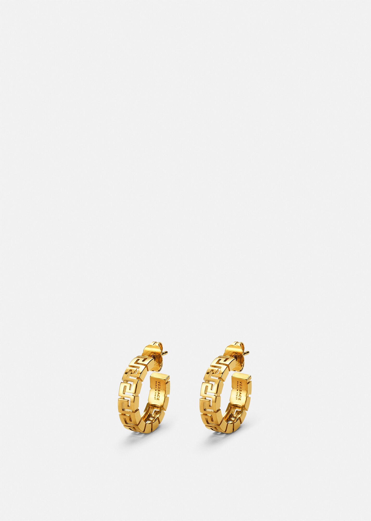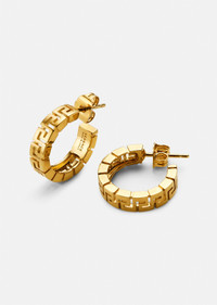 A subtle statement of style, these hoop earrings boast an iconic Greca pattern. All Versace Jewelry items are lead and nickel free. All materials are hypoallergenic. DETAILS & CARE - Greca - Metal: Brass - Finish: Gold - Please note water and perfume may damage the item - Made in Italy SIZE & FIT - Height: 0,4 cm