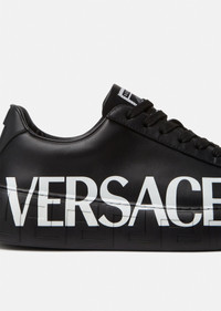 Versace's latest sneaker silhouette, Greca is characterized by understated, clean lines and the graphic Greca pattern on the midsole. The supple leather design features a lateral logo, while the outsole hides a Medusa on the heel. DETAILS & CARE - Logo - Low top - Lace up - Logo patch on tongue - Logo on heel - Greca pattern midsole - Medusa on outsole - Outer fabric: 100% Leather - Insole: 100% Leather - Sole: 100% Rubber - Made in Italy SIZE & FIT - Height: 1,5 - All sizes fit Italian standards - Fits true to size, take your normal size