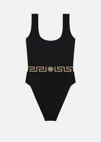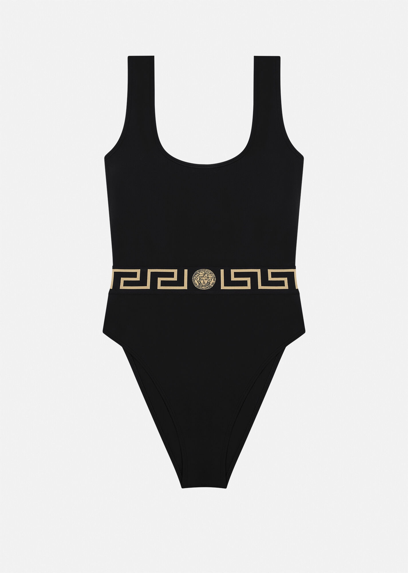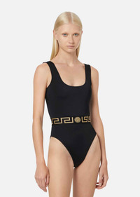 This one-piece swimsuit features Greca waistband details and a central Medusa motif. DETAILS & CARE - Greca waistband - Scoop-back - Outer fabric: 78% Polyamide 22% Elastane - Lining: 78% Polyamide 22% Elastane - Trim: 82% Polyester 9% Polyamide 9% Elastane - Delicate dry clean - Do not bleach - Do not iron - Do not tumble dry - Hand wash gently using mild detergent SIZE & FIT - All sizes fit Italian standards - The Model is 1,75 m and wears a size 1