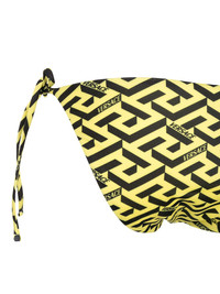 Greca Signature-print bikini bottoms In a black and yellow colourway, these classic bikini bottoms feature Versace's new Greca Signature print all-over. They fasten at the sides with a tie detail. Made in Italy Composition Polyester 78%, Elastane 22% Washing instructions Hand Wash