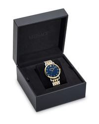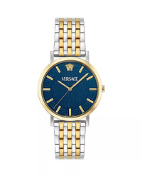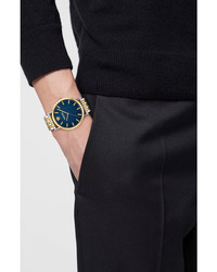 PRODUCT DETAILS - Gold-tone ionic plating; stainless steel; sapphire crystal - Case size: 40mm - Deployant clasp closure - Water resistant to 5 ATM - Swiss quartz movement - Navy blue dial - Two-tone stainless steel link bracelet - Manufacturer's 2-year limited warranty + 2-year extension - Photo may have been enlarged and/or enhanced. - Made in Switzerland Web ID: 5052388