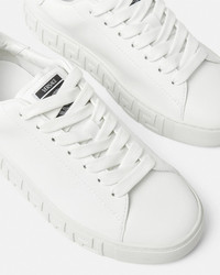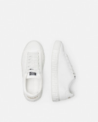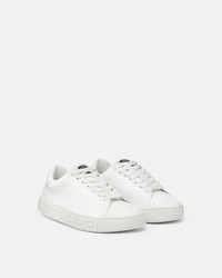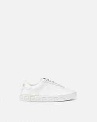 DETAILS The low-top silhouette is characterized by an engraved Greca pattern on vulcanized soles and a back logo stamp accents the lace-up style. These Greca sneakers have a 43% Responsible Input and are 100% animal free. New season Greca sneakers are made using responsible materials with certified recycled content and/or are derived from renewable origin. - Low top - Lace up - Logo patch on tongue - Logo on heel counter - Outer composition: 100% Nylon and PU coating - Main upper made of Freebio™ RPA: leather alternative derived from recycled nylon fibers and a water-based PU coating. - Lining: 100% Polyester and PU coating - Lining and counter made of Freebio™ rPU: derived from recycled pre-consumer polyurethane, recycled post-consumer PET bottles, calcium carbonate and wood fibers. - Sole: 100% Thermoplastic polyurethane - Sole partially made of recycled TPU: derived from pre-consumer factory scraps generated from other outsole productions. - Toe cap and counter partially made of recycled cotton: derived from pre and post-consumer recycled cotton fibers. - Padding partially made of bio-based PU: derived from corn starch. - Strobel partially made of recycled PET: derived from post-consumer recycled PET bottles. - Fussbet foam made from Biomass balance PU: derived from municipal waste methane. Item: 1013568-1A09608_1W010 SIZE & FIT - The shoe weighs 13 oz for the model size 37 - All sizes fit Italian standards - Fits true to size, take your normal size
