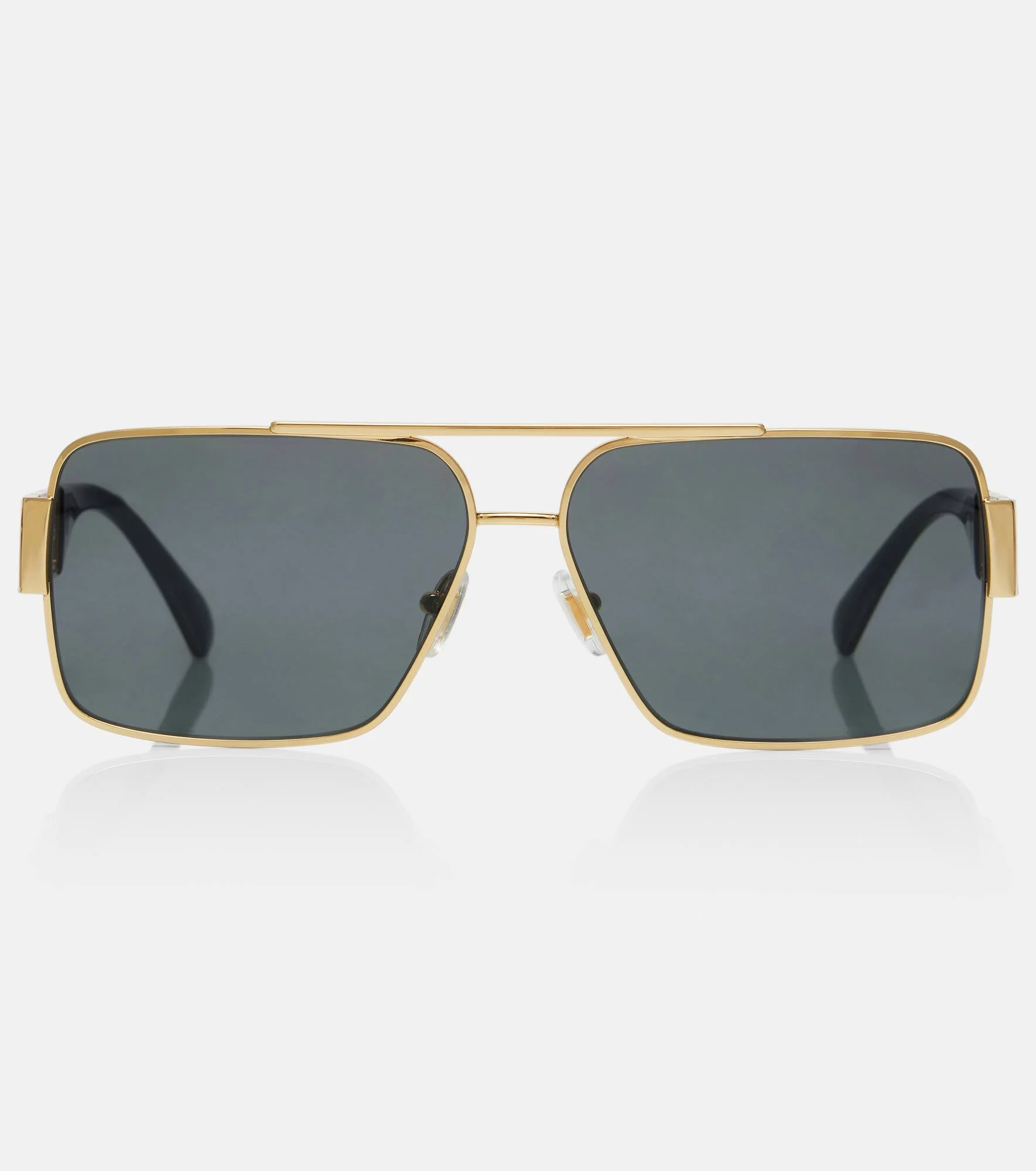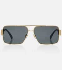 These sunglasses from Versace fuse archival references with a fashion-forward appeal. The design features metal frames accented with the house's unmistakable Greca motif and angular square lenses. Product Details - Frame material: metal - Frame color: gold - Lens filter category 3 - Lens color: grey - Made in Italy - Includes: logo-embossed hard case , cleaning cloth - The color of the case may vary - Item number: P01121375 Size & Fit - Lens width: 61mm-2.4" - Bridge size: 13mm-0.5" - Earpiece length: 145mm-5.7"