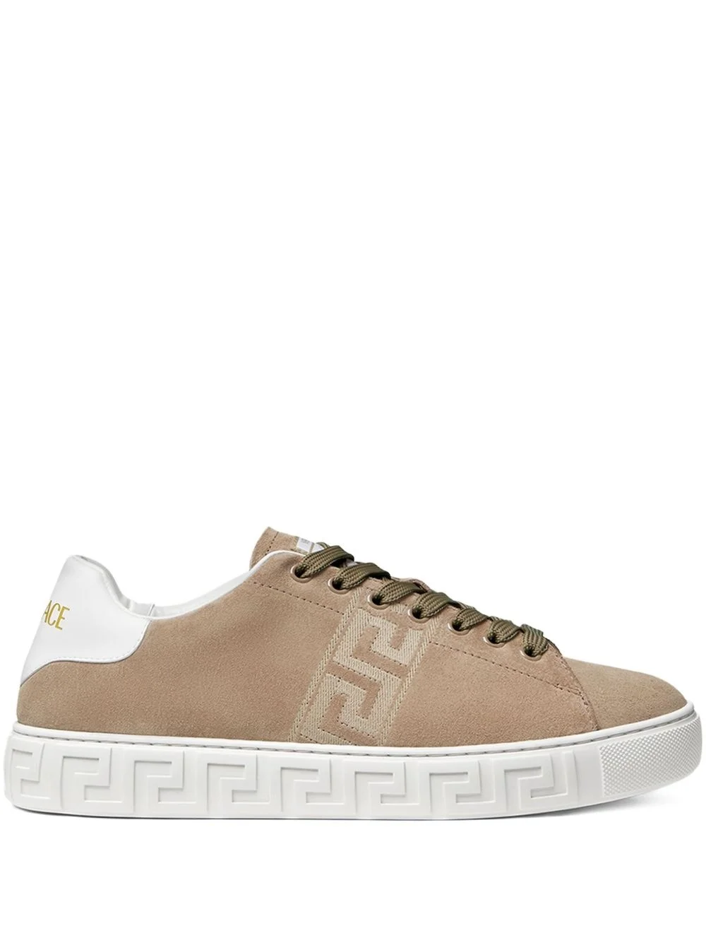 Greca suede sneakers Highlights - Sand beige - Front lace-up fastening - Vulcanised-rubber sole - Branded insole - Contrasting branded heel counter - Signature greca detailing Made in Italy Composition Lining: Polyester 100% Outer: Calf Leather 100% Sole: Thermoplastic Polyurethane (TPU) 100%