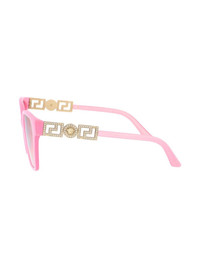 Greca sunglasses Highlights - Light pink - Acetate - Butterfly frame - Pink tinted lenses - Uv-protective lenses - Straight arms - Signature greca detailing - Crystal embellishment - Curved tips - These glasses come with a protective case. Made in Italy Composition Acetate 100% SIZE & FIT Measurement Arm Length 5.51 in(14 cm) Bridge Width 0.62 in(1.6 cm) Lens Diameter 2.2 in(5.6 cm)