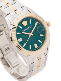 Greca Time 40mm Versace's undeniable connection to Greek mythology is also evidenced in its opulent timepieces. For example, this quartz-powered Greca Time 40mm is accented with the signature Medusa Head at 12 o'clock, making the model instantly recognisable of the Italian fashion house. Imported SIZE & FIT Model measurements Height 5 ft 11 in(1.8 m) Bust/Chest 31.88 in(81 cm) Hips 35.03 in(89 cm) Waist 24.01 in(61 cm) Measurement CIRCUMFERENCE 8.74 in(22.2 cm) DIAMETER 1.57 in(4 cm) Thickness 0.31 in(0.8 cm) WIDTH 1.25 in(3.2 cm)
