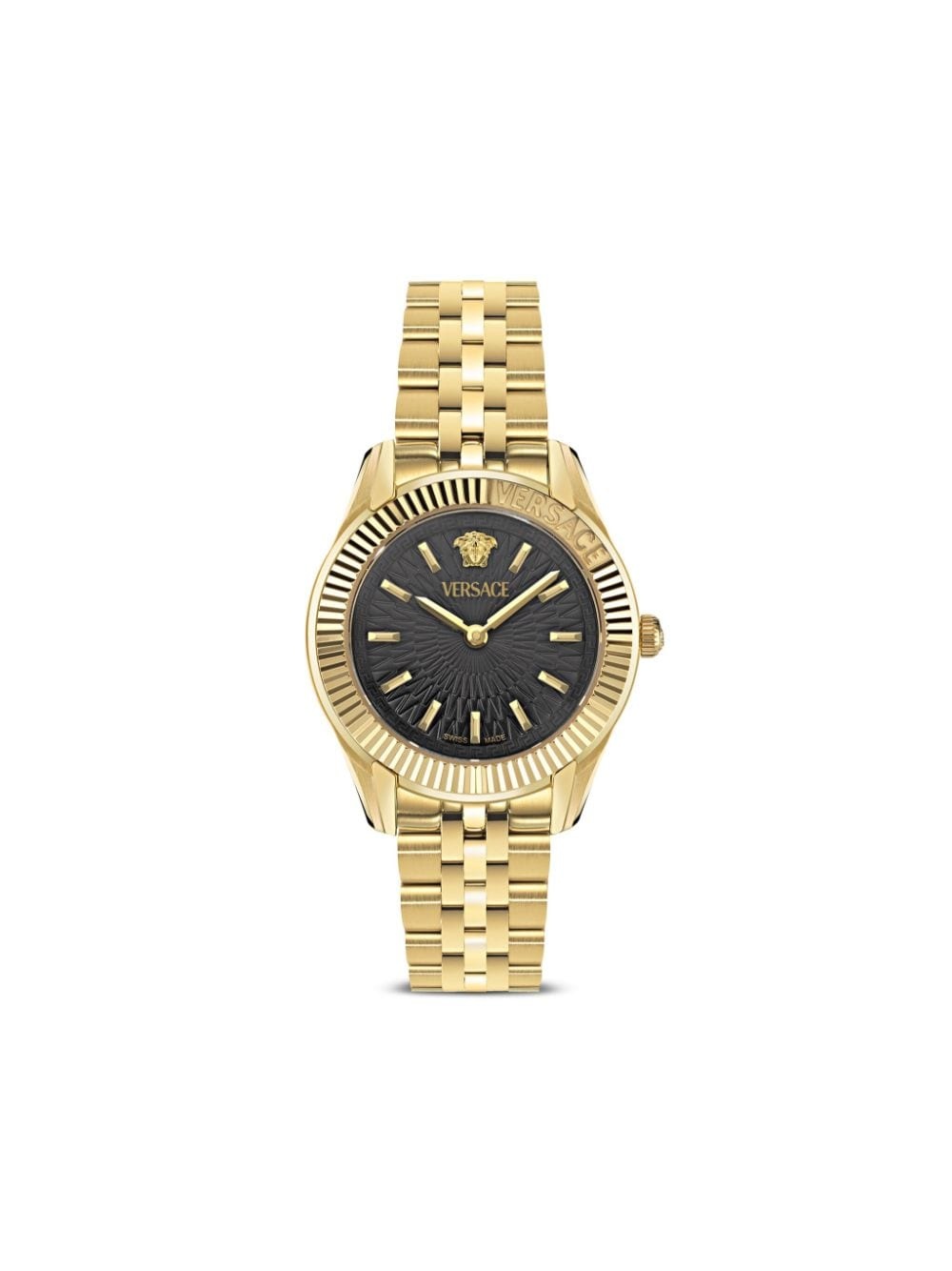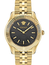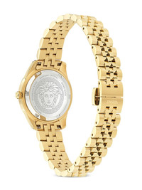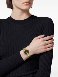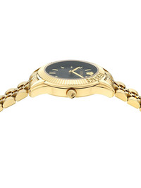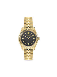Greca Time Lady 30mm Highlights - 30mm - Black/gold-tone - Stainless steel - Round face - Sapphire-crystal glass - Index dial - Baton hands - Medusa head motif - Quartz movement - Logo-engraved bezel - Screw-down crown - Adjustable link bracelet - Folding clasp - This item comes with a standard one-year warranty from the boutique. Imported