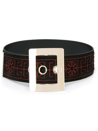 '#Greek' velvet belt Black and red chamois leather '#Greek' velvet belt from Versace featuring gold-tone hardware and an adjustable fit. Made in Italy Composition Outer: Metal (Other) 100%, Chamois Leather 100% SIZE & FIT Measurement WIDTH 2.75 in(7 cm) TOTAL LENGTH 31.88 in(81 cm) Minimum Length 29.13 in(74 cm)