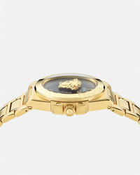DETAILS A classic, iconic watch celebrating the beauty and charm of the Medusa floating on the Soleil dial, enriched with the Versace logo at the top ring. All Versace watches are guaranteed by the 'Swiss Made' marking. - Case: IP2N case with Versace logo on top ring - Dial: Soleil Black dial with 3D Medusa between two glasses / Versace logo at 12h - Bracelet: IP2N bracelet with butterfly buckle - Movement: RONDA 762 Swiss Quartz 2-hands movement - Water Resistant: 5 ATM Item: PVE8D006-P0024_RTU_TU_PNUL__ SIZE & FIT - Case: 1.5"