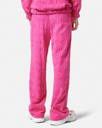 DETAILS These terrytowelling flared sweatpants feature a tonal Versace Allover pattern detailed with I Baroque side piping trims - Versace Allover motif - I Baroque print - Elastic drawstring waistband - Side pockets - Outer composition: 100% Cotton - Lining: 100% Cotton - Trim: 100% Cotton Item: 1020141-1A14584_Z4584 SIZE & FIT - The female model is 5'10" / 1.79 m tall and wears size XS. The male model is 6'3" / 1.91 m tall and wears size M.