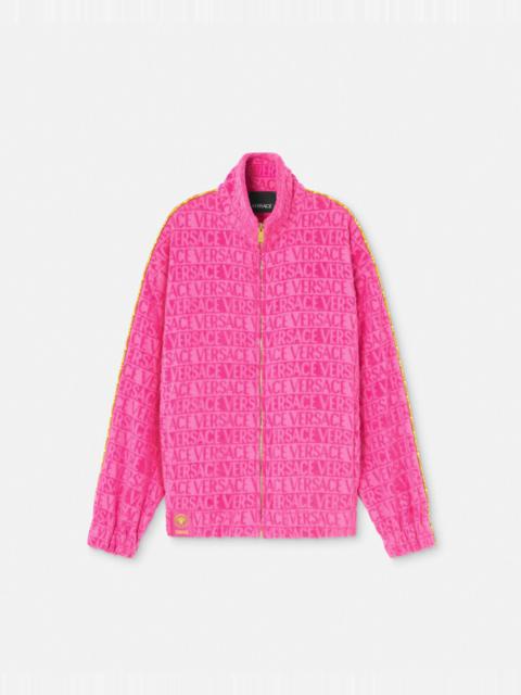 DETAILS This terrytowelling zipped sweatshirt features a tonal Versace Allover pattern and is accented by I Baroque piping trims along the sleeves - Versace Allover motif - I Baroque print - Front zip closure - Elastic waistband - Outer composition: 100% Cotton - Lining: 100% Cotton - Trim: 100% Cotton Item: 1020111-1A14584_Z7011 SIZE & FIT - The female model is 5'10" / 1.79 m tall and wears size XS. The male model is 6'3" / 1.91 m tall and wears size M.
