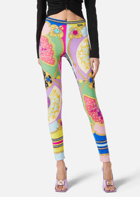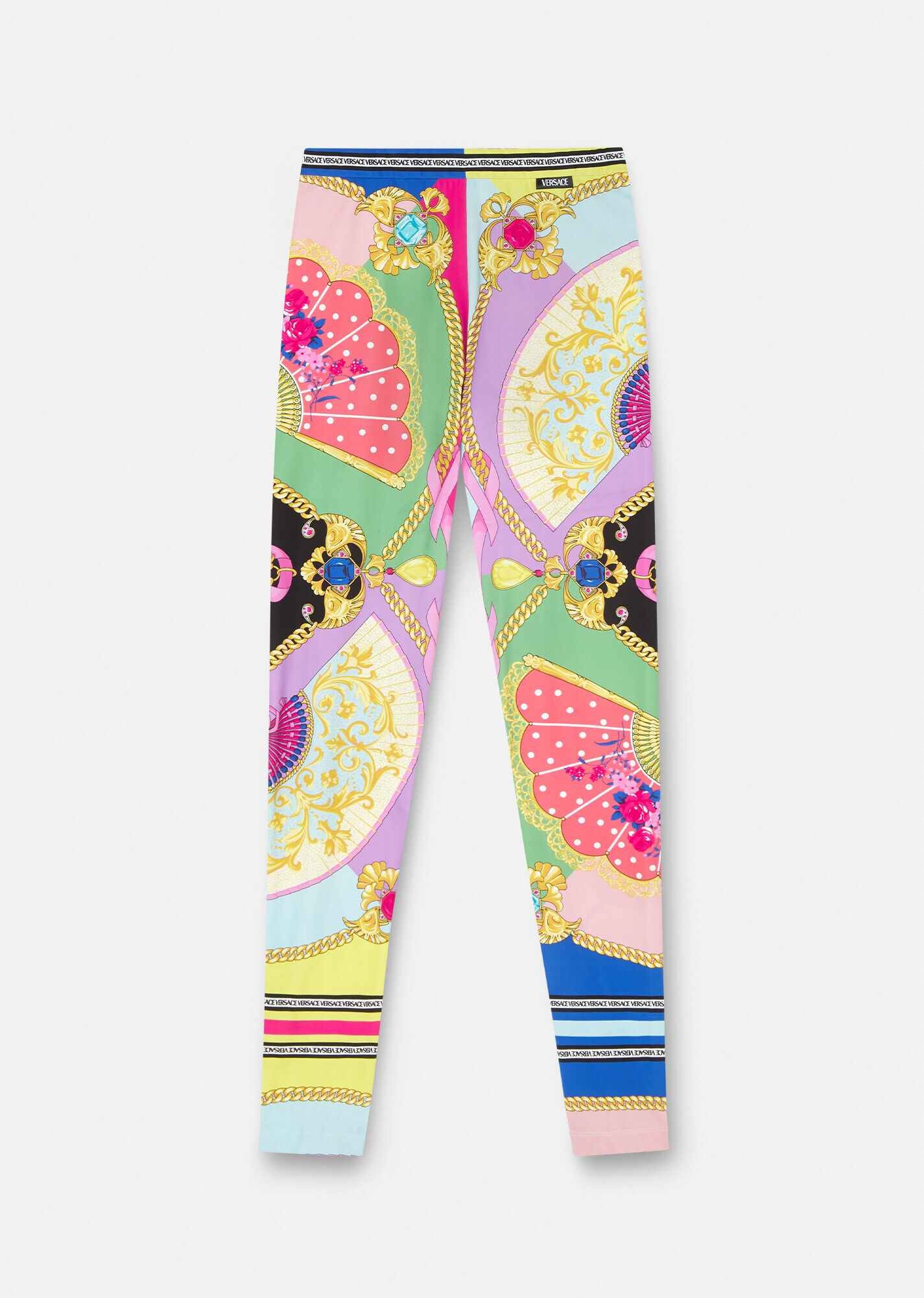 Very Versace, these leggings feature the all-over I Ventagli print - an explosion of colour, showcasing fans and interwoven chain motifs. This loungewear piece can make for a playful statement underneath elegant styles. DETAILS & CARE - I Ventagli print - Elasticated waistband - Outer fabric: 84% Polyamide 16% Elastane - Cool iron - Delicate dry clean - Do not bleach - Do not tumble dry - Do not wash SIZE & FIT - All sizes fit Italian standards