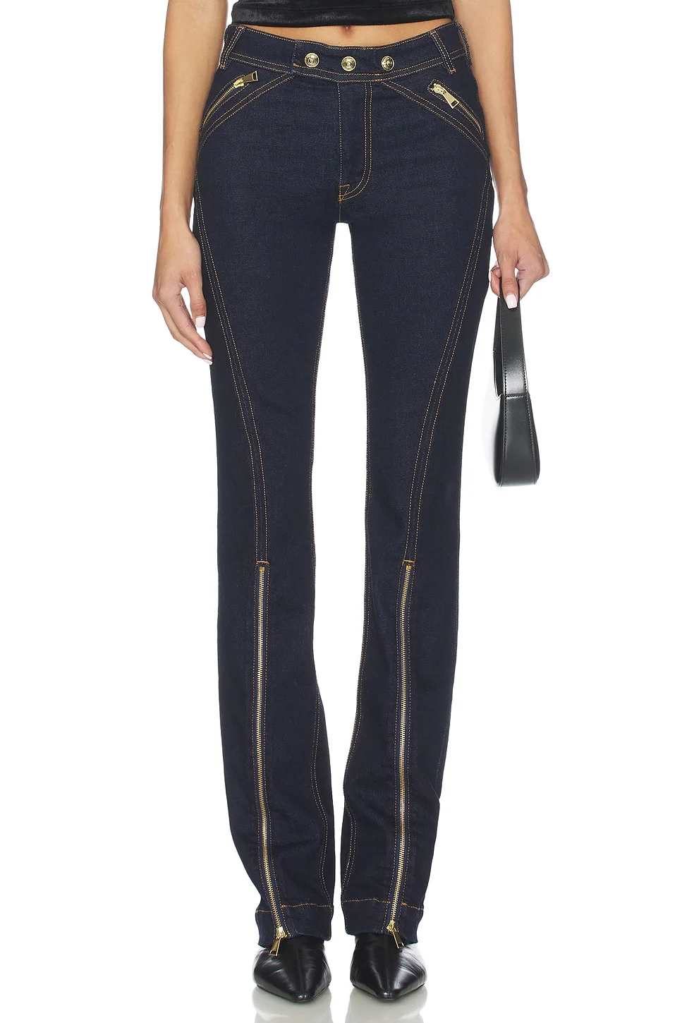 - Self: 98% cotton 2% elastane Secondary fabric: 100% polyester Lining:65% polyester 35% cotton - Made in Tunisia - Machine wash cold - Zip fly with horizontal snap button closures - Zip closure front pockets Back panel pockets - Calf zipper closure with exposed print design.15" at leg opening - Revolve Style No. VJEA-WJ4 - Manufacturer Style No. E79HAB56M_EDW042L54