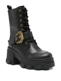 black lace-up fastening gold-tone buckle chunky sole round toe block heel - Color: BLACK - Made in: China - Designer Style ID: 79VA3S86 71570 899 Composition and care Outer Composition Calf Leather: 100.0%, Lining Composition Calf Leather: 100.0%, Sole Composition Rubber: 100.0%