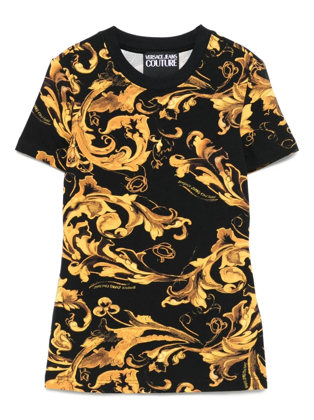 all-over print T-shirt Highlights - Black - Barocco print - Short sleeves - Crew neck Imported Composition Cotton 95%, Elastane 5% SIZE & FIT Model measurements Height 5 ft 10 in(1.78 m) Bust/Chest 31.49 in(80 cm) Hips 37 in(94 cm) Waist 23.62 in(60 cm) Washing instructions Hand Wash